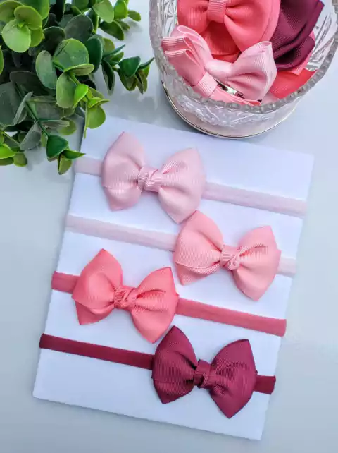 Laço com aproximadamente 7cm, faixa de meia tamanho único, serve de RN à 12 meses. Passe para o lado e veja a tabela de cores.